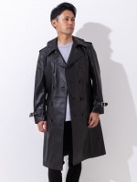 商品名 : フリーダムレザー トレンチコート ラムレザー 大きいサイズ 革ジャン 本革 レザーコート レザージャケット メンズ ロングコート 0301-L